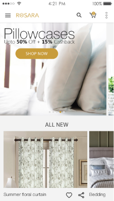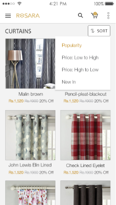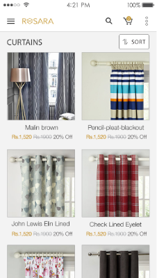 About the app :ROSARA HOME manufactures is an online e-commerce application,its the selling of an quality curtains in classic and contemporary styles, over an electronic network, primarily the internet.